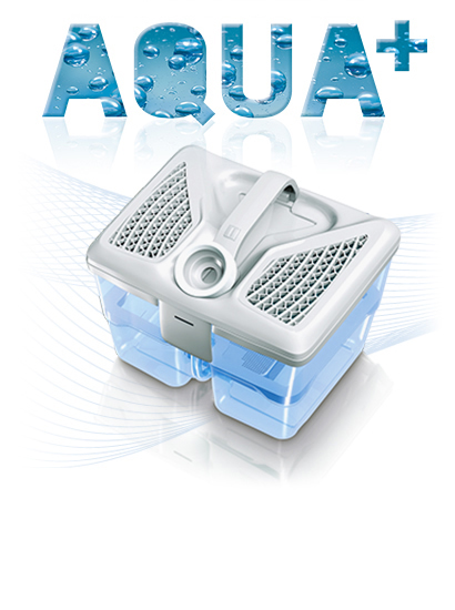Vain yhdellä litralla vettä AQUA+ on uudistanut pölynimuri- ja tahranpoistomarkkinat. Erityisesti tätä varten suunniteltu AQUA+ -suodatinrasia sitoo vesijohtoveden avulla hienopölyn sekä lemmikkien karvat, jotta ne eivät pääse enää huoneilmaan.